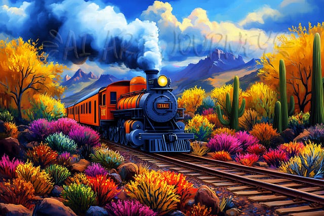 As I browsed my AI images, I realized several (loosely) involved transportation of one kind or another.